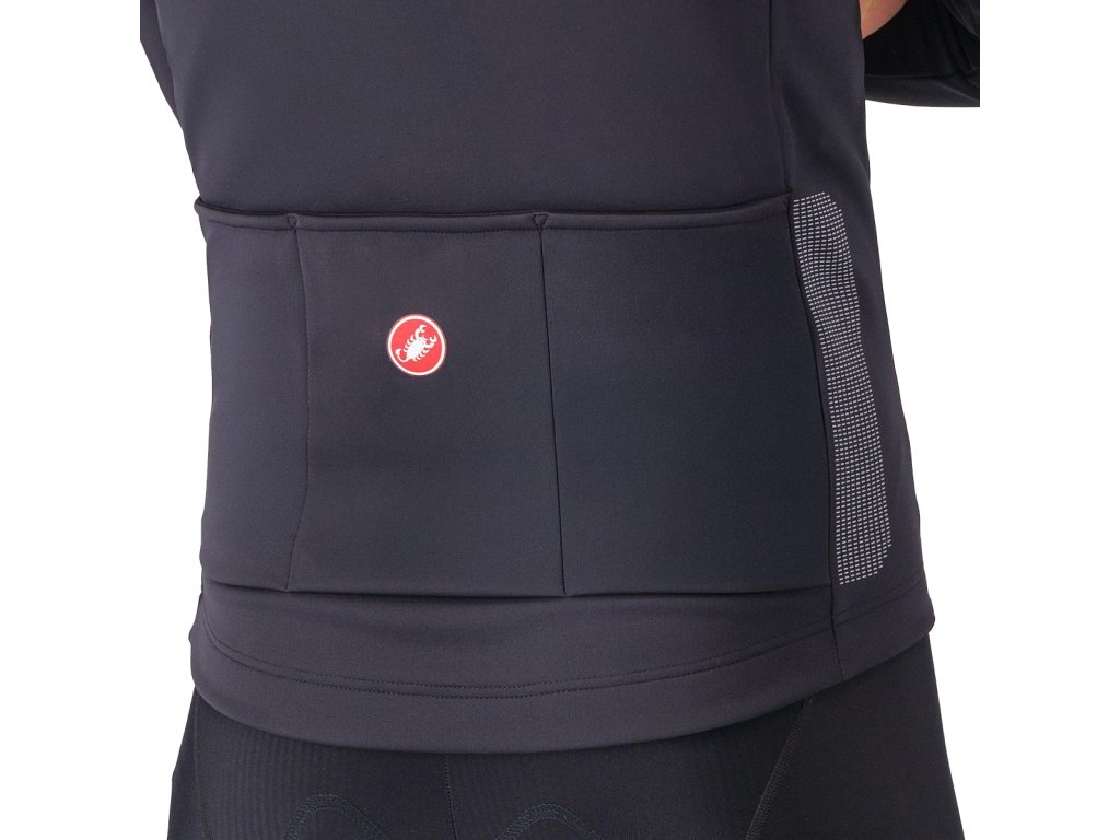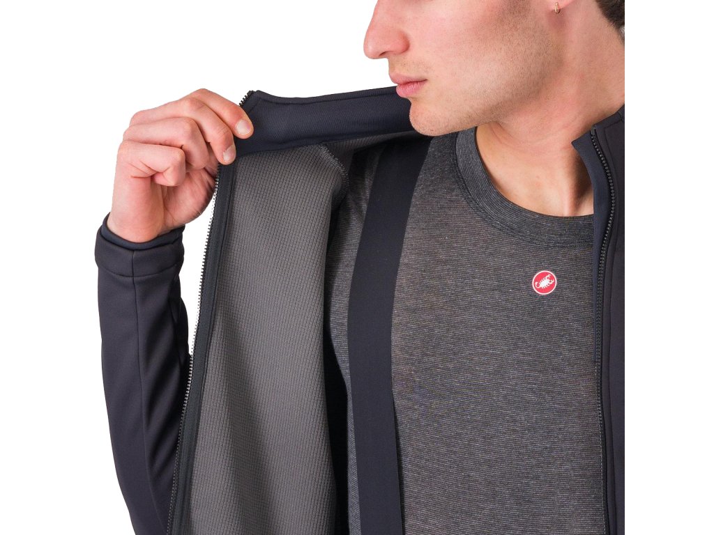 Druhá časť technológie spočíva v konštrukcii Castelli s obojsmernou elasticitou pre dokonalé prispôsobenie sa jazdnej polohe. Nechýba golier s fleecovou podšívkou, zips YKK® Vislon® pre najjednoduchšie nastavenie za chodu a 360° reflexné prvky pre viditeľnosť.