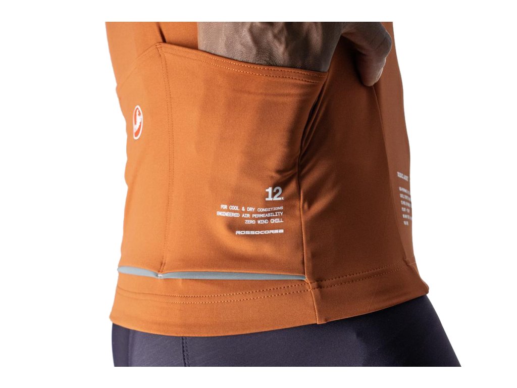 - Exkluzívna technológia Castelli Ristretto s špeciálne navrhnutou priepustnosťou vzduchu udržuje väčšinu vetra vonku a prepúšťa len toľko, aby zabezpečila výnimočnú priedušnosť – 12-krát viac ako predchádzajúce bundy Castelli Perfetto