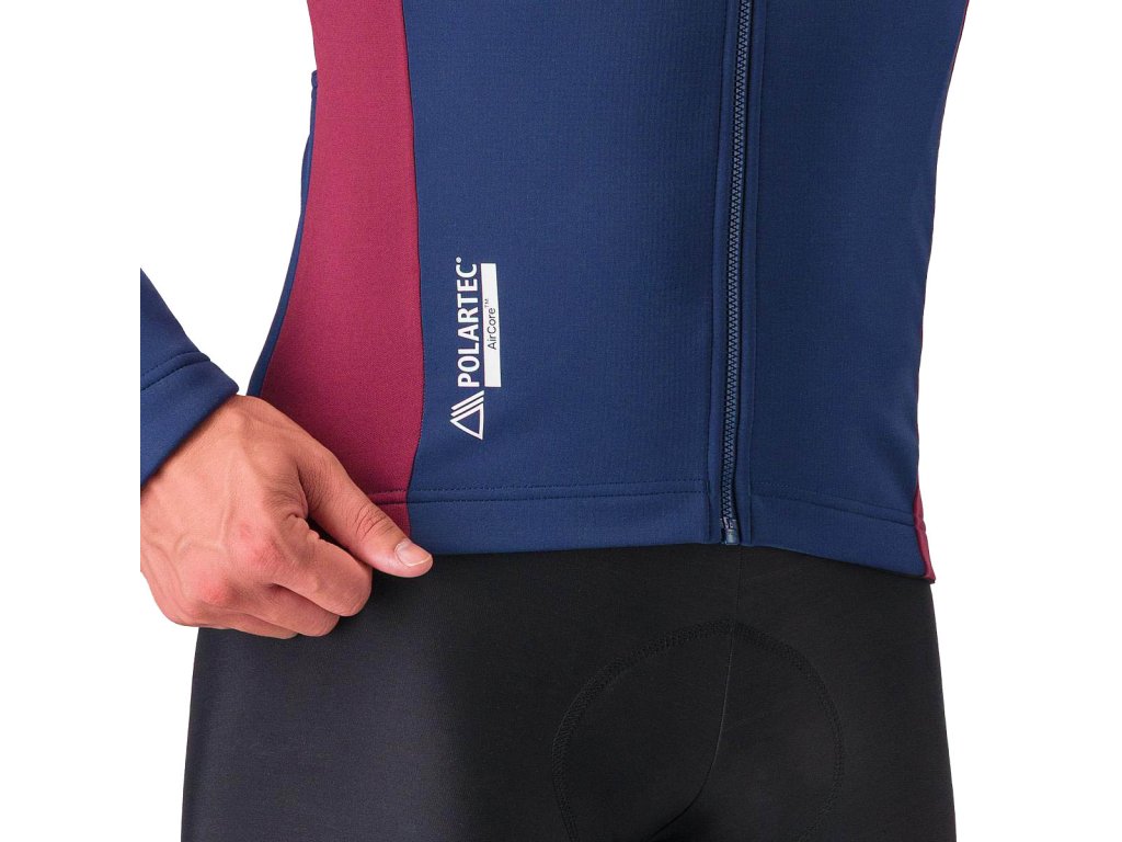 - Predná časť hrudníka a rukávov vyrobená z exkluzívnej elektrostaticky spriadanej priedušnej membrány Polartec® AirCore™ s hmotnosťou 298 g poskytuje špičkovú priedušnosť a je dostupná výlučne na produktoch Castelli