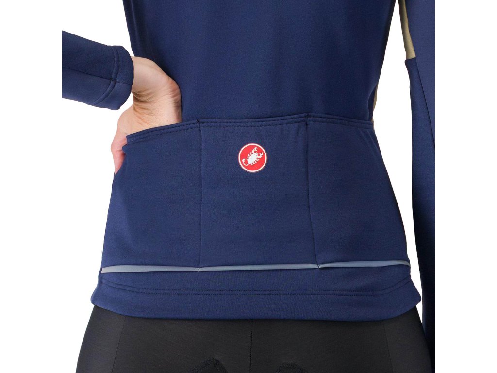 - Predná časť hrudníka a rukávov vyrobená z exkluzívnej elektrostaticky spriadanej priedušnej membrány Polartec® AirCore™ s hmotnosťou 298 g poskytuje špičkovú priedušnosť a je dostupná výlučne na produktoch Castelli