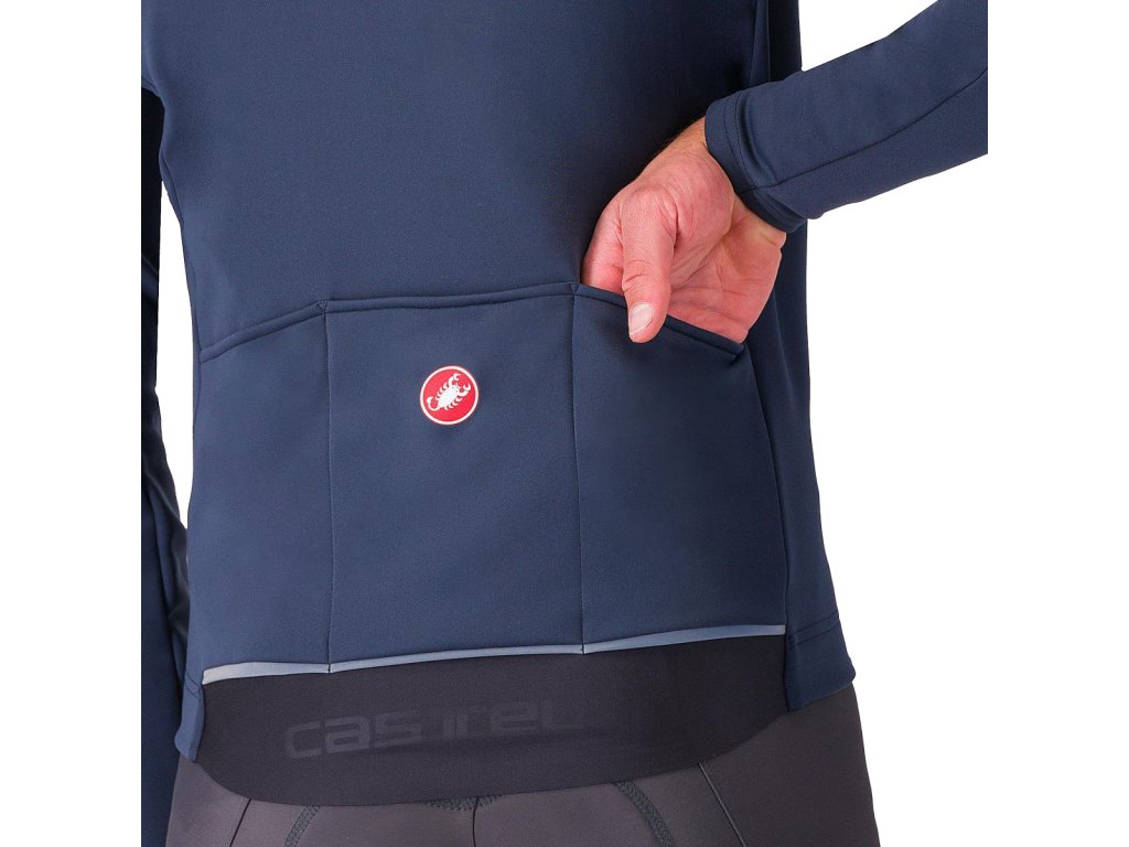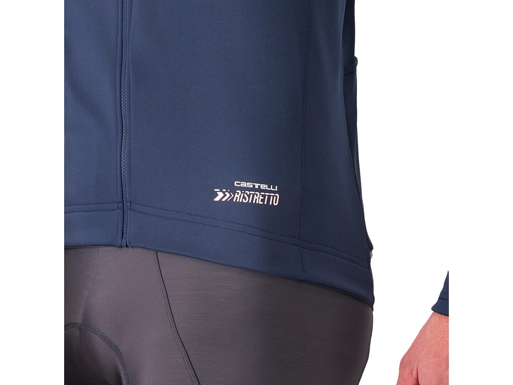 Táto bunda využíva technológiu Castelli Ristretto pre bezkonkurenčnú priedušnosť, hrejivosť a schopnosť udržať jazdca v suchu Materiál Ristretto Warm je pružný a umožňuje strih na telo a úplnú slobodu pohybu.