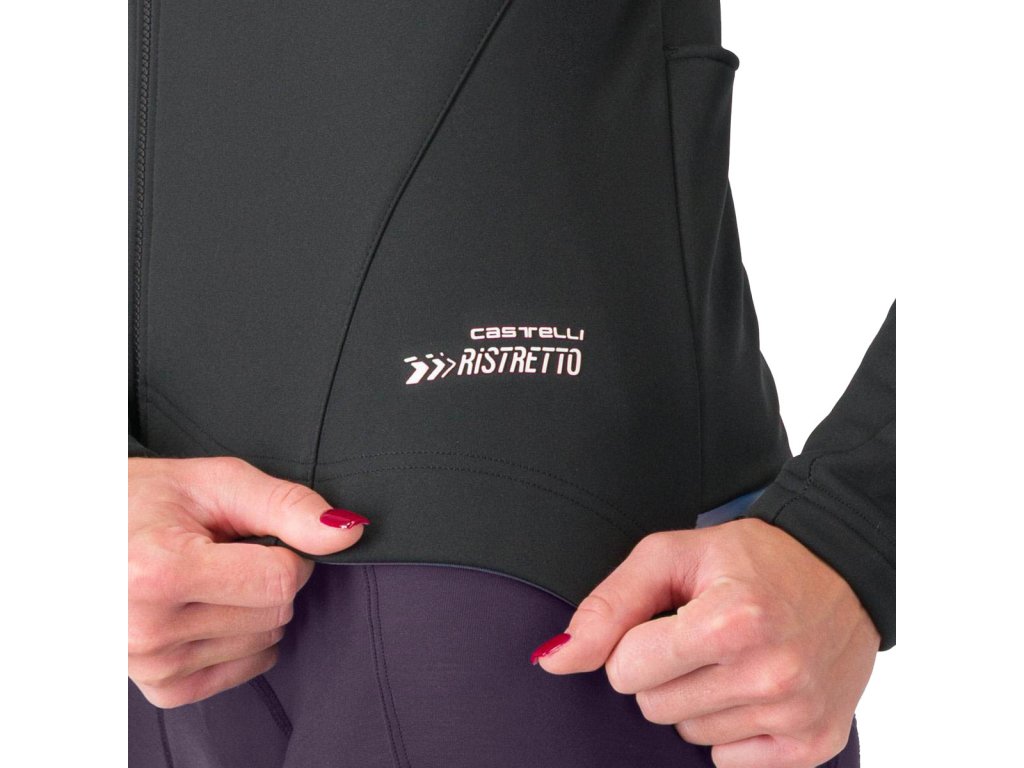 Táto bunda využíva technológiu Castelli Ristretto pre bezkonkurenčnú priedušnosť, hrejivosť a schopnosť udržať jazdca v suchu Materiál Ristretto Warm je pružný a umožňuje strih na telo a úplnú slobodu pohybu.