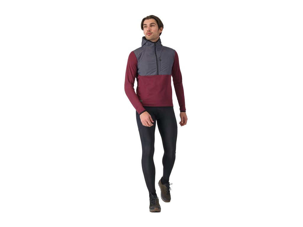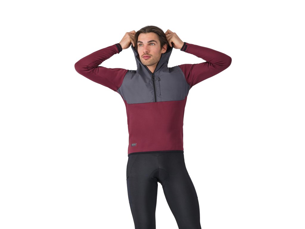 Castelli Unlimited Roam Hoodie, Bordeaux/ Lead gray Teplá fleecová mikina na bicykel aj mimo neho